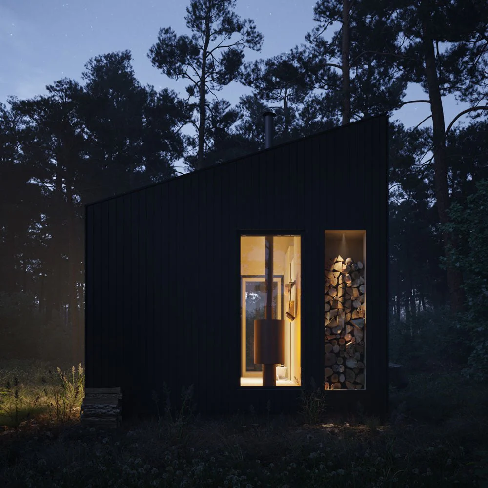 For admirers of the Fox Den, featured in Dwell Magazine, comes our catalog’s first ever shed roof home design. With design elements blended from both the Washroom and the Office, this small but efficient studio space features a full kitchen, bathroom, fold down bed, and clever outdoor storage for firewood. Glass on three sides of the space offer panoramic views of your own slice of earth from the comfort of your tiny house. Whether your days are full of Zoom calls and computer programing, or yoga and meditation, the Shed Tiny House will welcome you home with its zen like design and open floor plan.